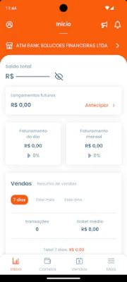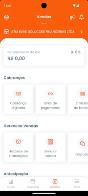 O ATM BANK vai ajudá-lo a acompanhar e gerenciar suas vendas, trazendo informações sobre seu negócio e seu desempenho. Você pode monitorar vendas, configurar meios de recebimento dos pagamentos, além de realizar cobrança com boleto, cobrança digitada e link de pagamento.