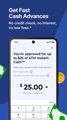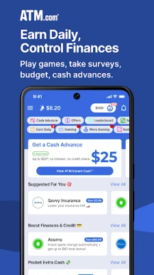 Looking for a quick cash advance or instant money to handle emergencies and avoid overdraft fees? With ATM Instant Cash™, you can get a cash advance fast with approval - no credit check, no interest, and no late fees. Think of it as your instant, payday cash advance option, helping you stay afloat when money's tight so you don't have to borrow money from your friends. Plus, you can earn extra cash and get paid to answer surveys, play games, and more!