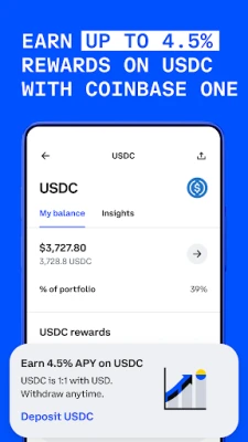 ² Upon purchase of USDC, you will be automatically opted in to rewards. You can opt out at any time. The rewards rate is subject to change. Customers will be able to see the latest applicable rates directly within their accounts.