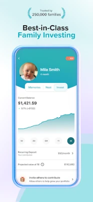 - Smart Money Management: Track contributions, monitor growth, and watch your child’s investments compound over time.