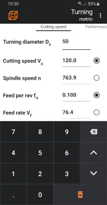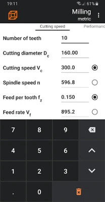 The application helps to calculate milling, turning, drilling and other technological parameters by selecting the material to be processed and entering various processing parameters.