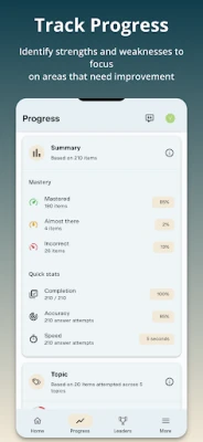 • Advanced progress tracking to pinpoint your strengths and weaknesses across