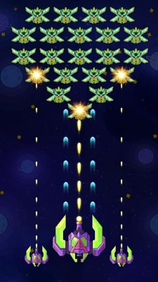 2.Collect Power-ups: Grab power-ups like weapon upgrades and shields to boost your spaceship prowess. Continuously upgrade your spacecraft to the highest level.